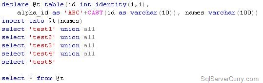 alpha_id as 'ABC'+CAST(id as varchar(10)), names varchar(100))